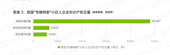 在這些“專精特新”小巨人企業(yè)中,專利申請總量48.18萬件,平均單企業(yè)專利申請98件;有效發(fā)明專利量6.57萬件,平均每家企業(yè)有效發(fā)明專利量約13件;軟件著作權共5.56萬件,平均每家企業(yè)擁有軟件著作權約11件。