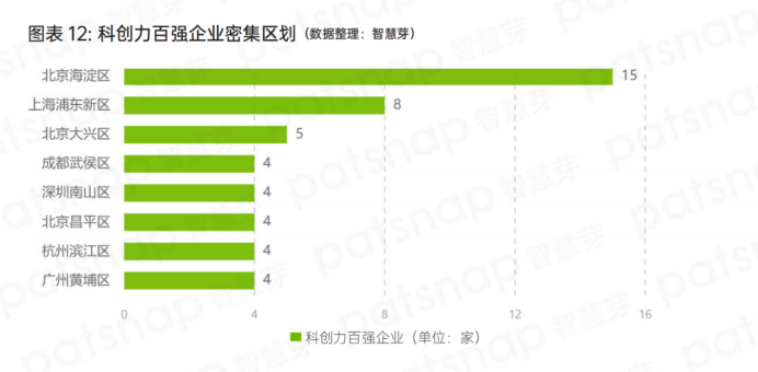科創(chuàng)力排名前100企業(yè)所在行政區(qū)中,中國“專精特新”小巨人企業(yè)最多的區(qū)劃是北京市海淀區(qū),有15家企業(yè)上榜,第二是上海市浦東新區(qū),有8家企業(yè)上榜,第三是北京市大興區(qū),5家企業(yè)上榜。杭州市濱江區(qū)、北京市昌平區(qū)、廣州市黃埔區(qū)、深圳市南山區(qū)和成都市武侯區(qū)分別有4家企業(yè)上榜。