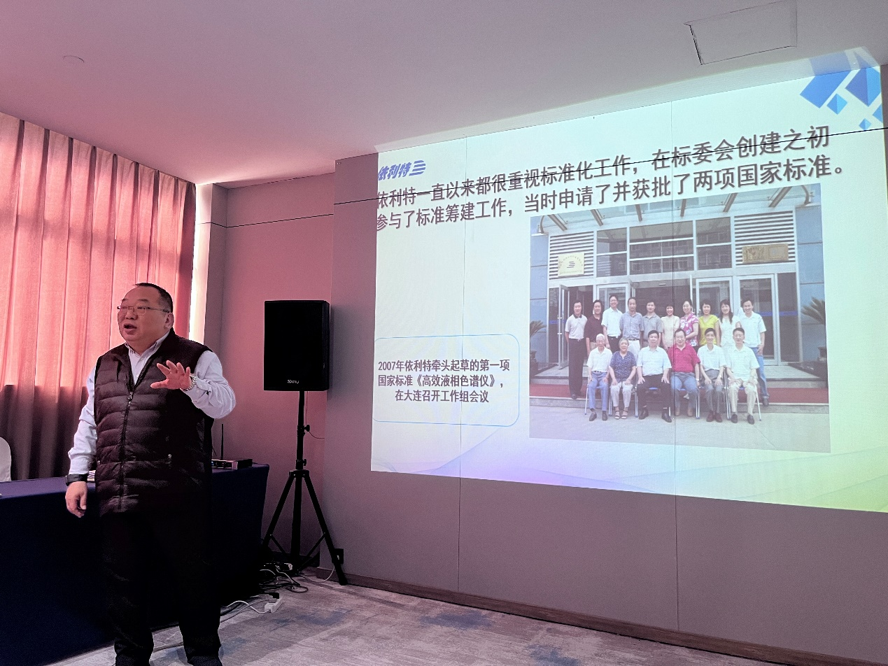 會議開始,由起草單位蘇州依利特科技集團有限公司董事長李彤博士發表了題為《依利特液相色譜與標準化發展之路》的開場報告。李彤博士講述了公司30年來在液相色譜領域的深耕歷程,隨后詳細介紹了公司以系列全、產線全、覆蓋全為特點的產品及服務體系,并回顧了依利特與分析儀器標委會近20年的深厚合作情誼。