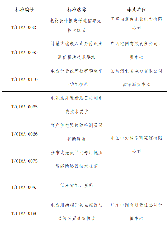 2025年4月8-9日,中國(guó)儀器儀表行業(yè)協(xié)會(huì)(以下簡(jiǎn)稱“協(xié)會(huì)”) 以視頻會(huì)議形式組織召開了《電能表外接光纖通信單元技術(shù)規(guī)范》等8項(xiàng)團(tuán)體標(biāo)準(zhǔn)(項(xiàng)目信息詳見附表)送審稿審查會(huì)。來自國(guó)網(wǎng)山東省電力公司電力科學(xué)研究院、北京化工大學(xué)、河南電力計(jì)量科學(xué)研究院、國(guó)網(wǎng)浙江省電力有限公司營(yíng)銷服務(wù)中心、廣東電網(wǎng)有限責(zé)任公司計(jì)量中心、國(guó)網(wǎng)湖北省電力有限公司電力科學(xué)研究院、國(guó)網(wǎng)山東省電力公司、華立科技股份有限公司、貴州電網(wǎng)有限責(zé)任公司的九位專家組成審查組,國(guó)網(wǎng)山東省電力公司電力科學(xué)研究院的徐民教授級(jí)高工擔(dān)任組長(zhǎng)。會(huì)議由協(xié)會(huì)副秘書長(zhǎng)程紅主持。協(xié)會(huì)及電工儀表分會(huì)的團(tuán)體標(biāo)準(zhǔn)工作人員參加了本次會(huì)議。