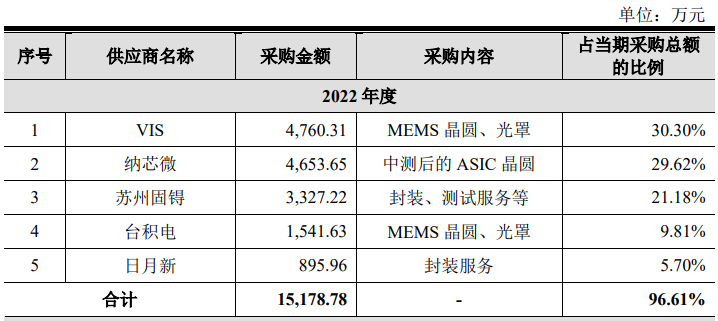 招股書也展示了明皜傳感目前的主要供應(yīng)商情況: