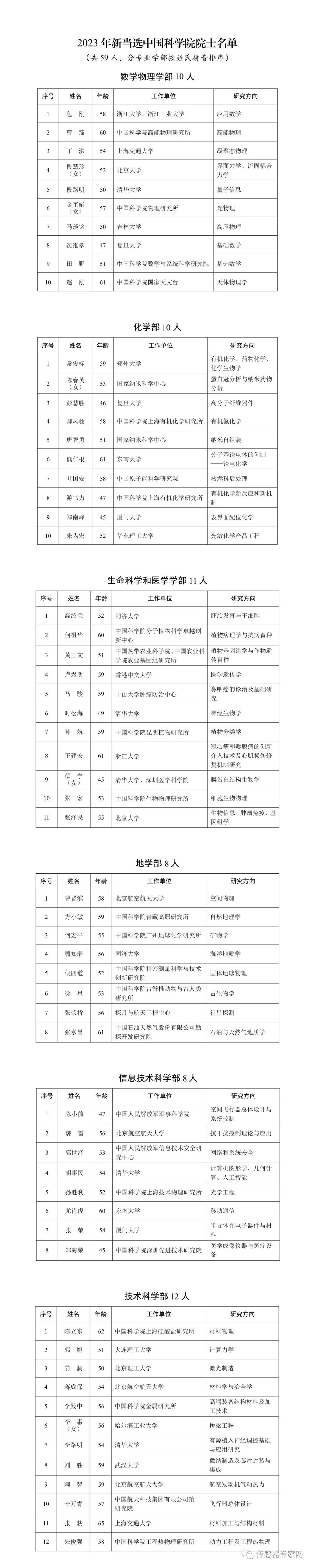 2023年新當(dāng)選中國科學(xué)院院士名單【全】(可上下滑動查看,可點擊放大查看)