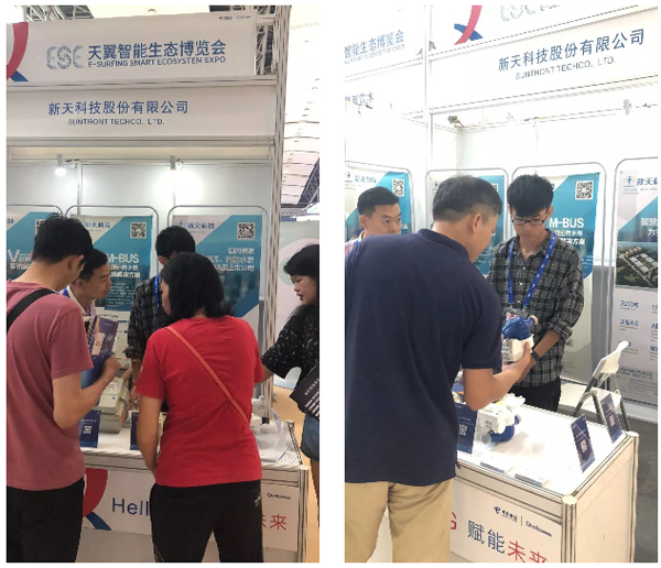 NB-IoT作為5G的重要組成部分,已經廣泛應用在智慧城市的建設中,本次天翼物聯的智慧水務展臺上,新天科技聯合展示NB-IoT產品及解決方案,吸引了現場諸多關注。