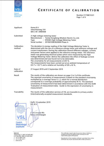 此次校準證書的取得,充分證明了國際權威檢測機構對我司高壓計量設備檢定裝置的認可,也證明了公司高壓檢測技術在國際上的領先地位,為公司高壓計量產品走向國際市場創造了有利條件。