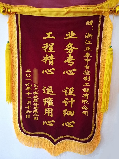 近日,由正泰中自負責實施的某化工企業自動化安全升級改造項目一次性開車成功。一面錦旗贈予公司,表達了對“中自人”服務精神、工程能力、業務水平的贊賞和肯定。