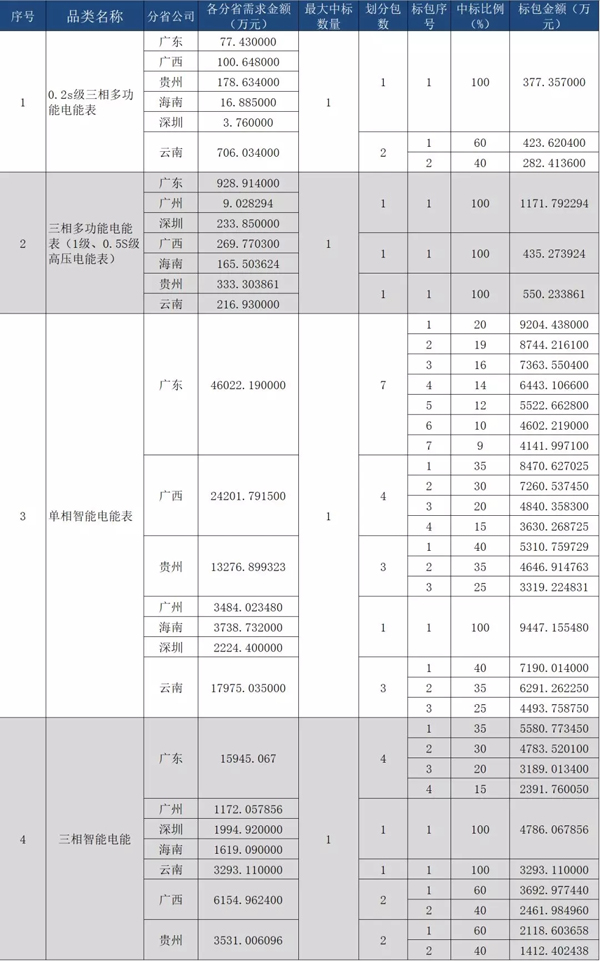 在南方電網(wǎng)公司2019年計(jì)量產(chǎn)品(電能表)第一批框架招標(biāo)項(xiàng)目中林洋能源成為中標(biāo)人之一,共中2個(gè)包,分別為單相智能電能表和三相智能電能表,中標(biāo)總金額約6582萬元。