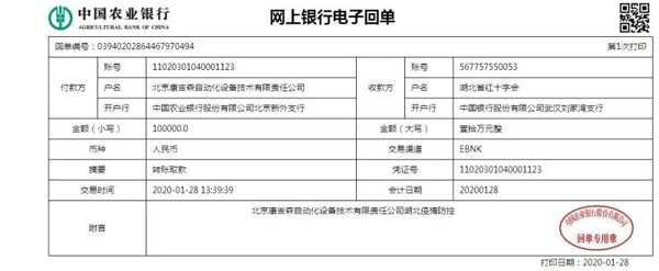 1月27日北京康吉森自動(dòng)化公司向湖北省紅十字協(xié)會(huì)捐款10萬(wàn)元及疫情重災(zāi)區(qū)公司員工每人3000元給予支持關(guān)懷。以小康大愛(ài)和守望相助精神助力早日打贏(yíng)這場(chǎng)沒(méi)有硝煙的戰(zhàn)役。