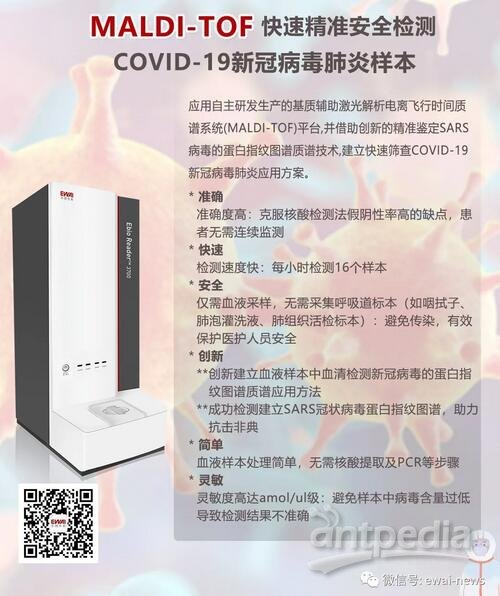 2020年2月25日,北京東西分析儀器有限公司自主研發生產的 Ebio ReaderTM3700 全自動飛行時間質譜系統 (MALDI-TOF)入選中國醫學裝備協會推薦的《新冠肺炎疫情防治急需醫學裝備目錄(第三批)》。
