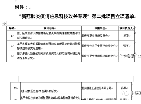 恭喜我司 “高機動型負壓方艙CT檢測車的研發”項目通過重慶市“新型冠狀病毒感染肺炎疫情應急科技攻關專項”立項了。