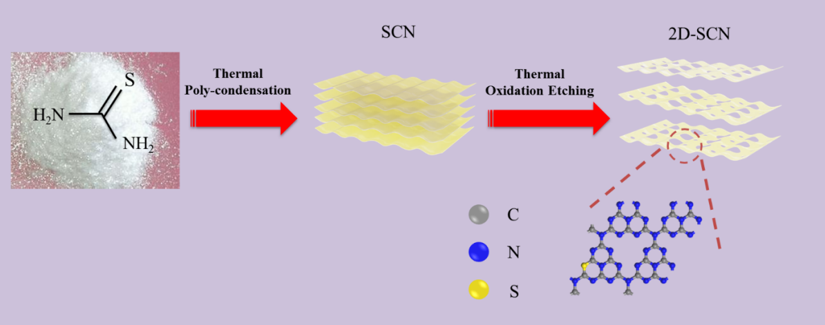 二維超薄結構的硫摻雜光催化材料制備過程示意圖