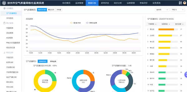 徐州市大氣污染防治網格化監測平臺,助力徐州實現線上監控與線下網格化監測體系有機融合,第一時間發現問題、在線督辦、查處整改并上報結果,實現智能監控系統建設全覆蓋,徹底轉變了以往“人海戰術”執法監測模式,全面提升徐州環境監測監控質量水平,實現徐州空氣質量的持續改善。