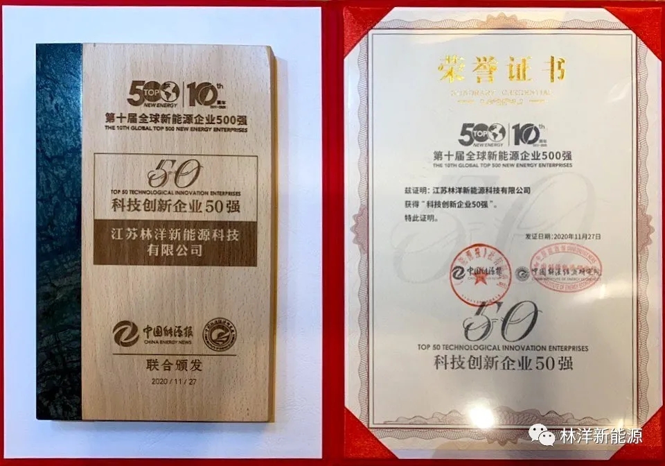 近日,由山西省能源局、《中國能源報》社聯(lián)合主辦的“2020能源轉型論壇暨第十屆全球新能源企業(yè)500強峰會”在山西太原舉行,江蘇林洋新能源科技有限公司(下稱“林洋新能源”)成功入選峰會“2020全球新能源企業(yè)500強”和“新能源科技創(chuàng)新企業(yè)50強”兩項榜單。