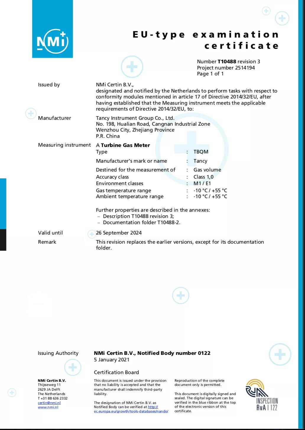 近日,金卡智能旗下天信儀表TBQM型氣體渦輪流量計(jì)同時(shí)取得歐盟MID和國際OIML的低溫認(rèn)證。該產(chǎn)品歷時(shí)3年,攻克了管道氣體溫度在-10℃下滿足1.0級(jí)計(jì)量精度要求的技術(shù)難題,有效提升了產(chǎn)品在不同工況下的計(jì)量性能和國際競爭力。天信儀表成為行業(yè)內(nèi)全國首家榮獲歐洲荷蘭NMi和OIML低溫認(rèn)證的企業(yè),向國際低溫氣體的貿(mào)易交接計(jì)量邁出重要一步。