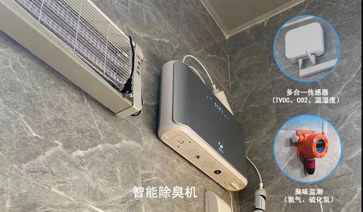 2.拒絕臭氣熏天:通過對公廁內的異味(主要是硫化氫、氨氣)、PM2.5、TVOC、CO2溫濕度等環境狀態實時監測。同時,公廁還安裝了超聲波霧化除臭系統設備,里面加入了除臭劑、植物精油等,當環境空氣質量不達標時,系統就會自動向監控中心發出報警,并同步開啟超聲波霧化除臭系統設備,自動除臭,直至清除異味。