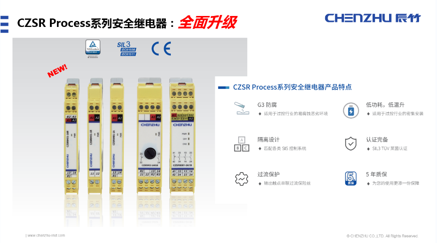 上海辰竹儀表有限公司發(fā)布的新產(chǎn)品是CZSR Process系列安全繼電器。