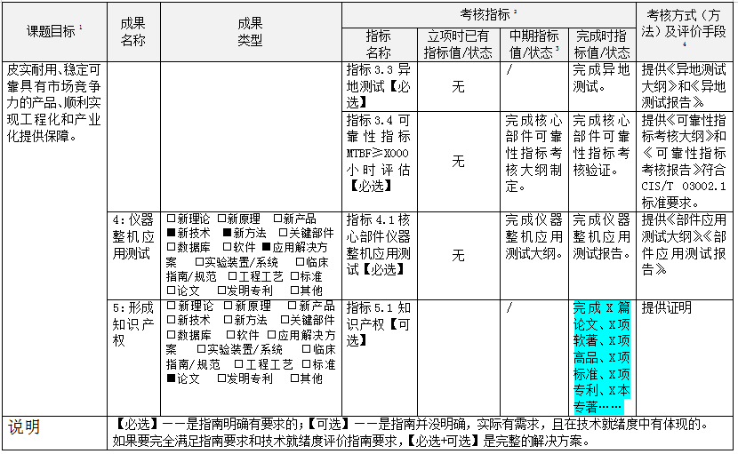 根據(jù)項(xiàng)目申報(bào)指南的要求,整機(jī)類項(xiàng)目中期檢查前技術(shù)就緒度應(yīng)不低于6級,結(jié)題綜合績效評價(jià)前技術(shù)就緒度應(yīng)不低于8級。核心部件類項(xiàng)目中期檢查前技術(shù)就緒度應(yīng)不低于6級,結(jié)題綜合績效評價(jià)前技術(shù)就緒度應(yīng)不低于9級。項(xiàng)目工程化單位需按照技術(shù)就緒度評估指南開展自評估工作,并出具一份技術(shù)就緒度自評估報(bào)告,以及提供支撐報(bào)告的相關(guān)佐證材料。