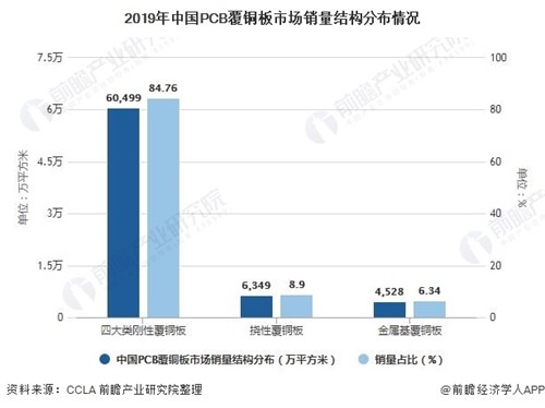 2019年中國PCB覆銅板市場銷量結(jié)構(gòu)分布情況