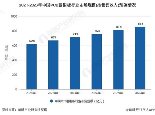 2021-2026年中國PCB覆銅板行業(yè)市場規(guī)模(按銷售收入)預(yù)測情況