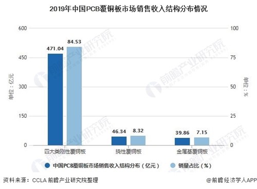 2019年中國PCB覆銅板市場銷售收入結(jié)構(gòu)分布情況