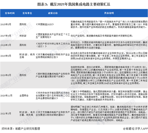 圖表3:截至2021年我國集成電路主要政策匯總