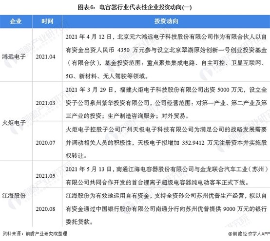 電容器行業代表性企業最新投資動向