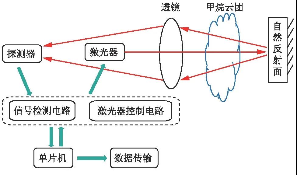 激光檢測模塊主要由激光信號收發單元、信號控制采集處理單元、主控與數據傳輸單元3部分組成。其中,激光信號收發單元由激光器、探測器、透鏡組成;信號控制采集處理單元包括激光器控制電路與信號檢測電路;主控與數據傳輸單元主體結構為單片機,其主要作用為向信號控制采集處理單元發送指令并接收信號,同時進行外部數據的傳輸。