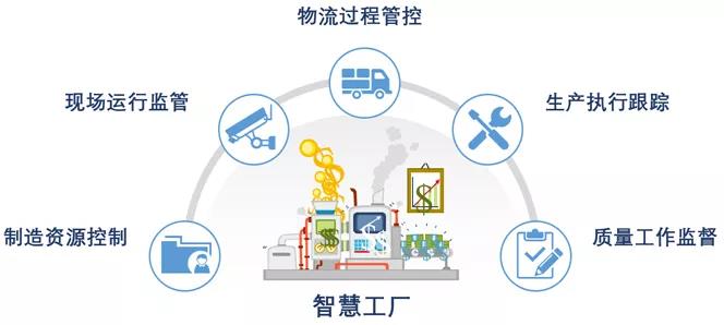 智慧工廠包含工廠運(yùn)營(yíng)管理的五個(gè)方面,制造資源控制、現(xiàn)場(chǎng)運(yùn)行監(jiān)管、物流過(guò)程管控、生產(chǎn)執(zhí)行跟蹤、質(zhì)量工作監(jiān)督等。
