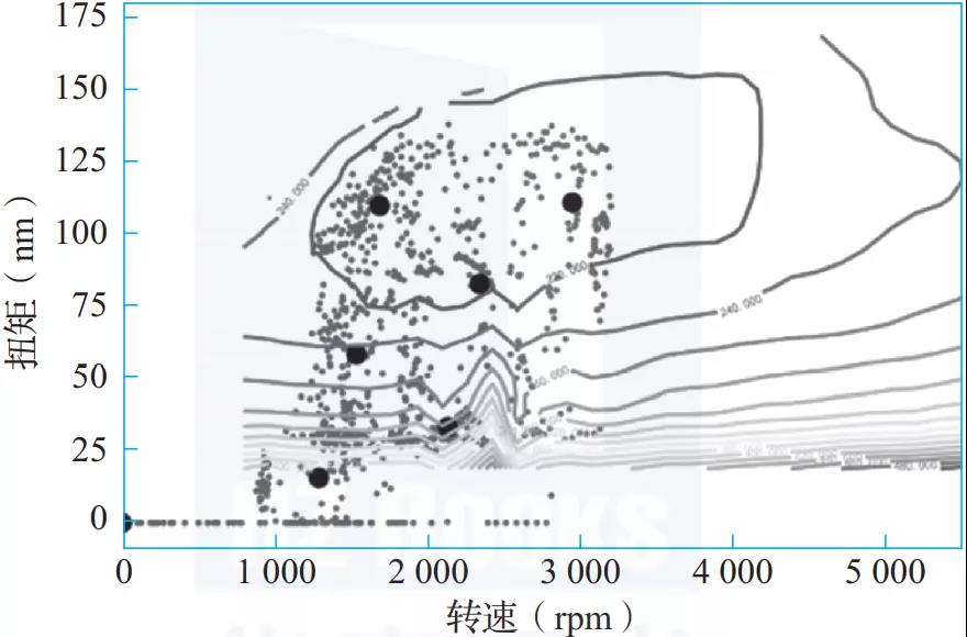 圖2-11中頂部圈定的區(qū)域是試驗標定的最優(yōu)油耗區(qū),圖中的點是用戶駕駛行為的油耗區(qū)。根據(jù)大數(shù)據(jù)分析,就可以調整發(fā)動機管控參數(shù),實現(xiàn)面向實際用戶駕駛的最優(yōu)油耗。