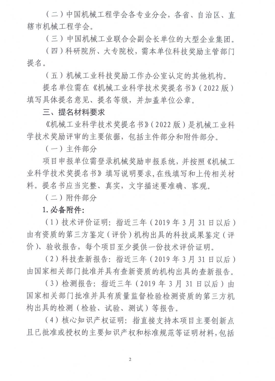 關于開展2022年度“機械工業科學技術獎”提名工作