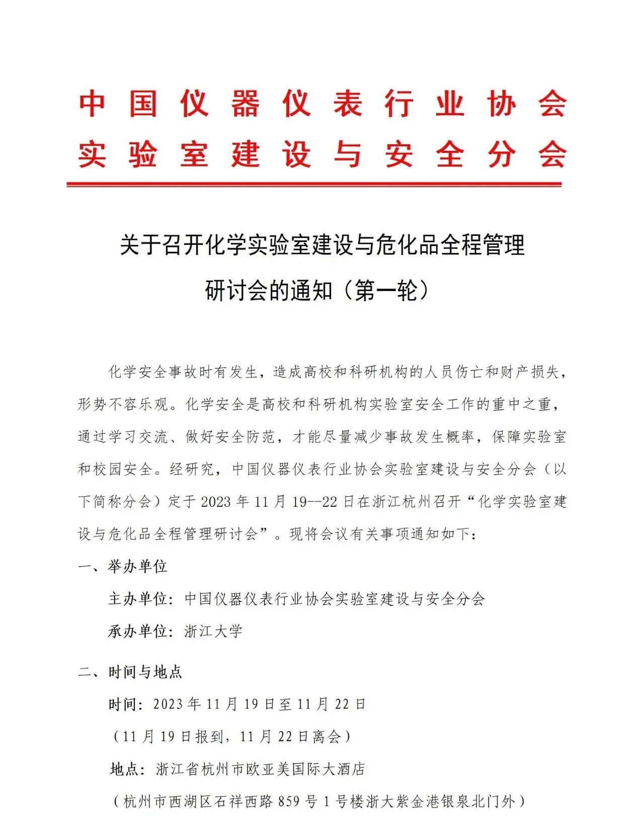關于召開化學實驗室建設與危化品全程管理研討會的通知