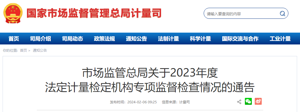 市場(chǎng)監(jiān)管總局關(guān)于2023年度法定計(jì)量檢定機(jī)構(gòu)專項(xiàng)監(jiān)督檢查情況的通告