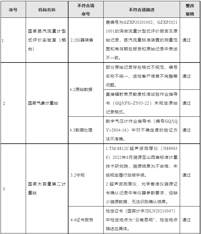 現(xiàn)場(chǎng)隨機(jī)抽查150份受檢機(jī)構(gòu)存檔證書(報(bào)告)及相應(yīng)原始記錄,發(fā)現(xiàn)存在人員培訓(xùn)不足、原始數(shù)據(jù)有誤等不符合項(xiàng),未發(fā)現(xiàn)嚴(yán)重違法違規(guī)行為。