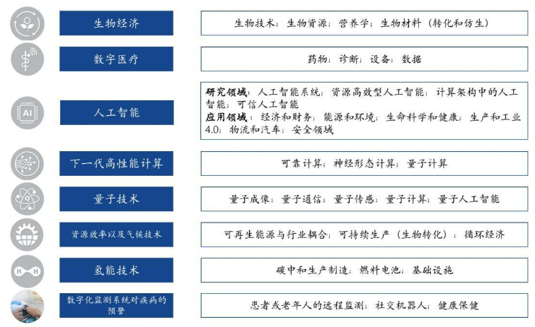 弗勞恩霍夫協(xié)會目前的研究領(lǐng)域主要有8項(xiàng),包括:生物經(jīng)濟(jì)、數(shù)字醫(yī)療、人工智能、下一代高性能計(jì)算、量子技術(shù)、資源效率以及氣候技術(shù)、氫能技術(shù)和數(shù)字化監(jiān)測系統(tǒng)對疾病的預(yù)警等。