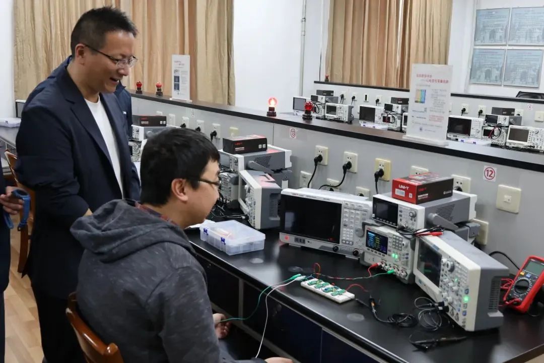 揭牌儀式后,雙方代表共同參觀了清華大學(xué)電子工程系歷史展廳以及清華大學(xué) — 優(yōu)利德科技電子電路實(shí)驗(yàn)室,并就技術(shù)細(xì)節(jié)和教學(xué)需求展開了深入的交流。