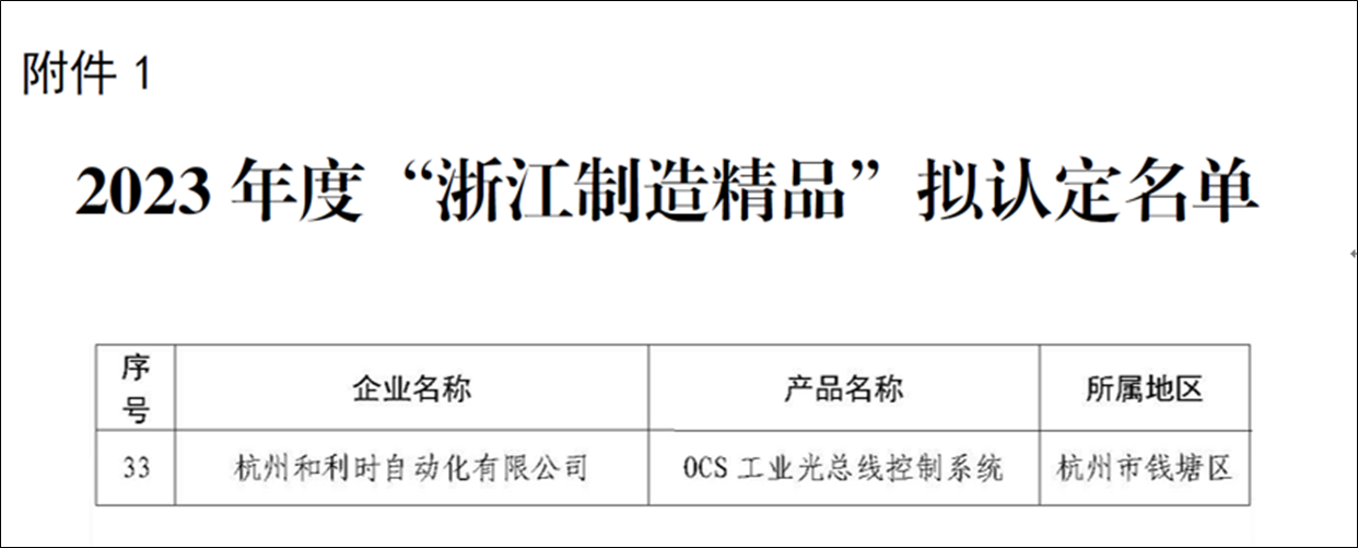 近日,浙江省經(jīng)濟(jì)和信息化廳對(duì)2023年度“浙江制造精品”名單進(jìn)行公示,杭州和利時(shí)自動(dòng)化有限公司申報(bào)的“OCS 工業(yè)光總線控制系統(tǒng)”榮列其中。
