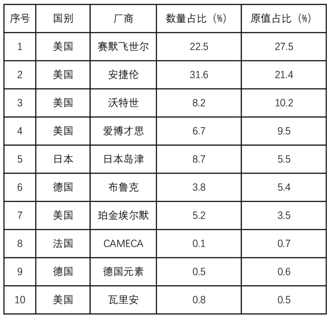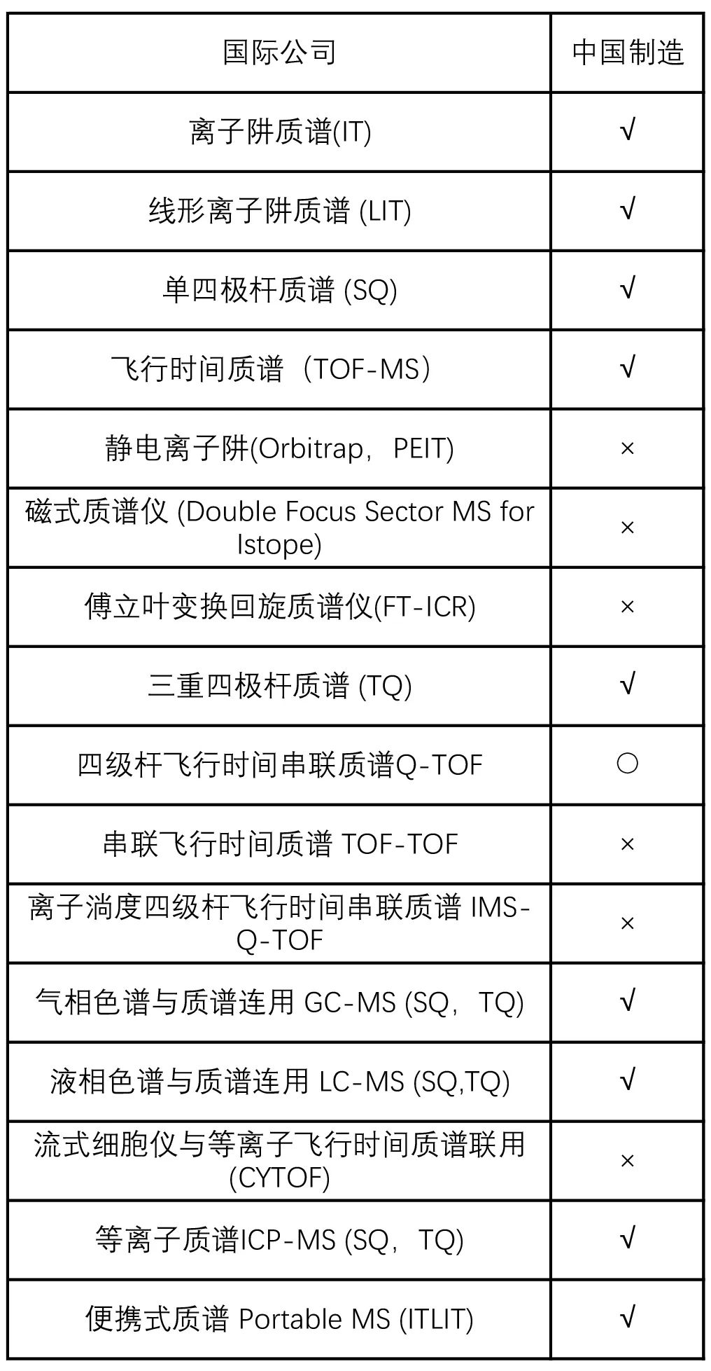 但在核心關鍵技術研發上,渦輪分子泵(真空系統)、光電倍增器、高精密質量分析器以及特殊精密傳感器等核心部件尚未攻克。高端質量分析器領域還存在產品空白。靜電離子阱、傅立葉變換回旋質譜儀、離子淌度四級桿飛行時間串聯質譜、串聯飛行時間質譜、等離子飛行時間質譜聯用等還未實現突破。(表7