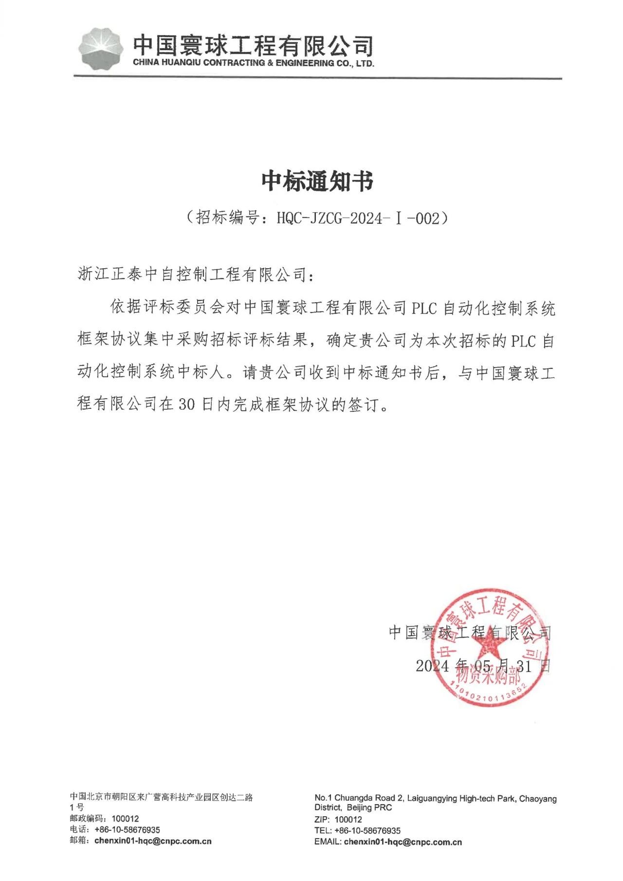 繼成功中標(biāo)中石化2024年度DCS國產(chǎn)化系統(tǒng)框架協(xié)議,成為中國石化合格供應(yīng)商后,近日,浙江正泰中自控制工程有限公司又成功中標(biāo)中石油下屬中國寰球工程有限公司2024-2025年度PLC自動化控制系統(tǒng)框架協(xié)議集中采購項(xiàng)目。