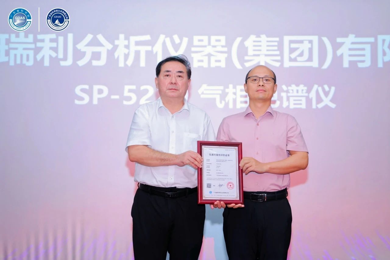 活動(dòng)現(xiàn)場(chǎng),廣東省科學(xué)院黨委書記廖兵為獲得首批產(chǎn)品認(rèn)證、鑒定評(píng)價(jià)證書的9家企業(yè)頒發(fā)證書,為企業(yè)完善產(chǎn)品和提升市場(chǎng)競(jìng)爭(zhēng)力賦能。北京北分瑞利分析儀器(集團(tuán))有限責(zé)任公司SP-5220氣相色譜儀產(chǎn)品獲得此項(xiàng)殊榮,公司副總經(jīng)理周加才參加本次活動(dòng)并上臺(tái)領(lǐng)獎(jiǎng)。