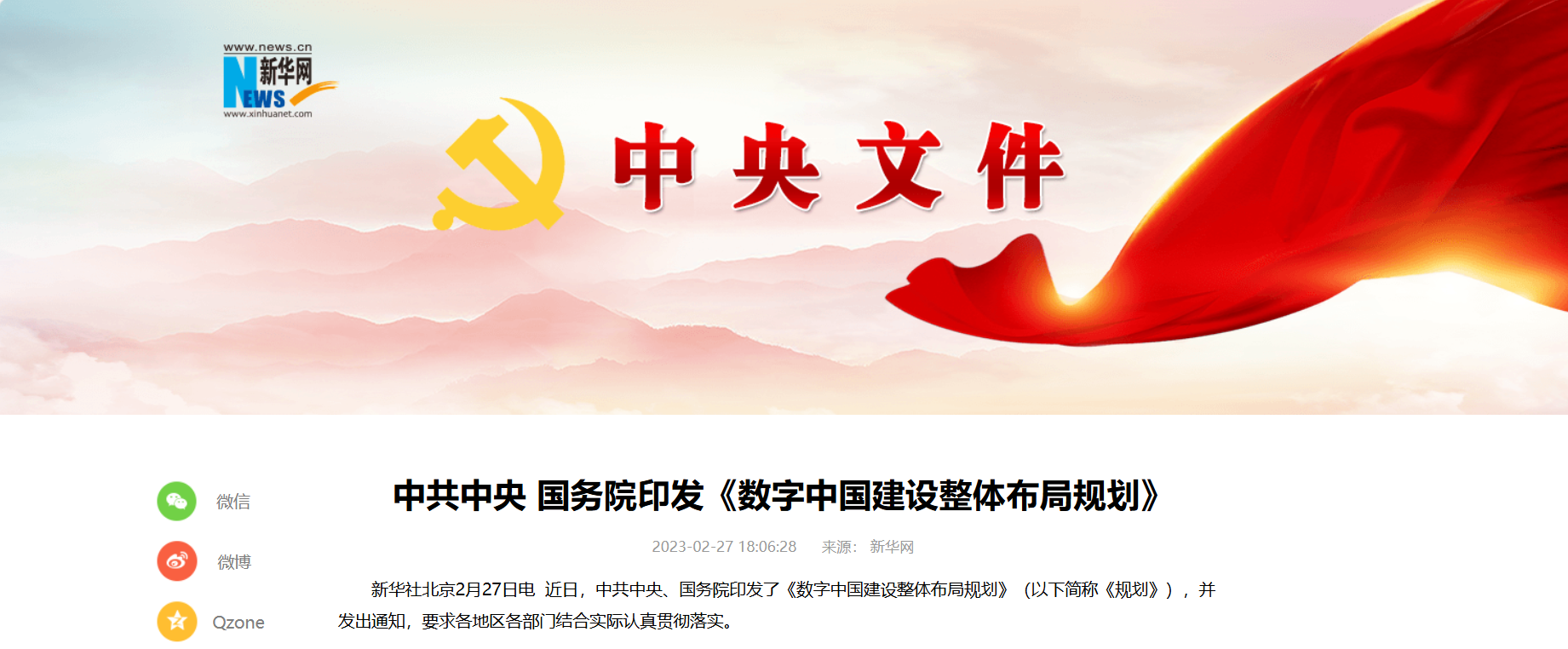 2023年《數(shù)字中國建設(shè)整體布局規(guī)劃》出臺(tái)