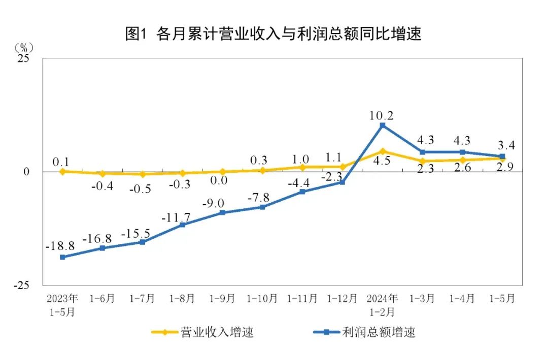 1—5月份,全國規模以上工業企業實現利潤總額27543.8億元,同比增長3.4%(按可比口徑計算)。