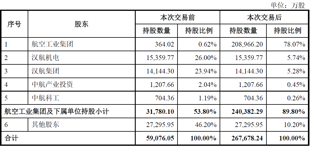 漢航機(jī)電直接持有公司26.00%股權(quán),為公司控股股東。航空工業(yè)集團(tuán)合計(jì)控制公司53.80%股權(quán),為公司實(shí)際控制人。國務(wù)院國資委為公司最終控制人。