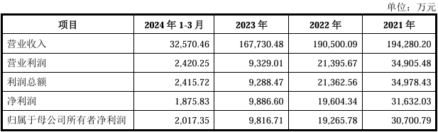2021年-2023年,公司營業(yè)收入分別為19.43億元、19.05億元及16.77億元;凈利潤分別為3.07億元、1.93億元及0.98億元。