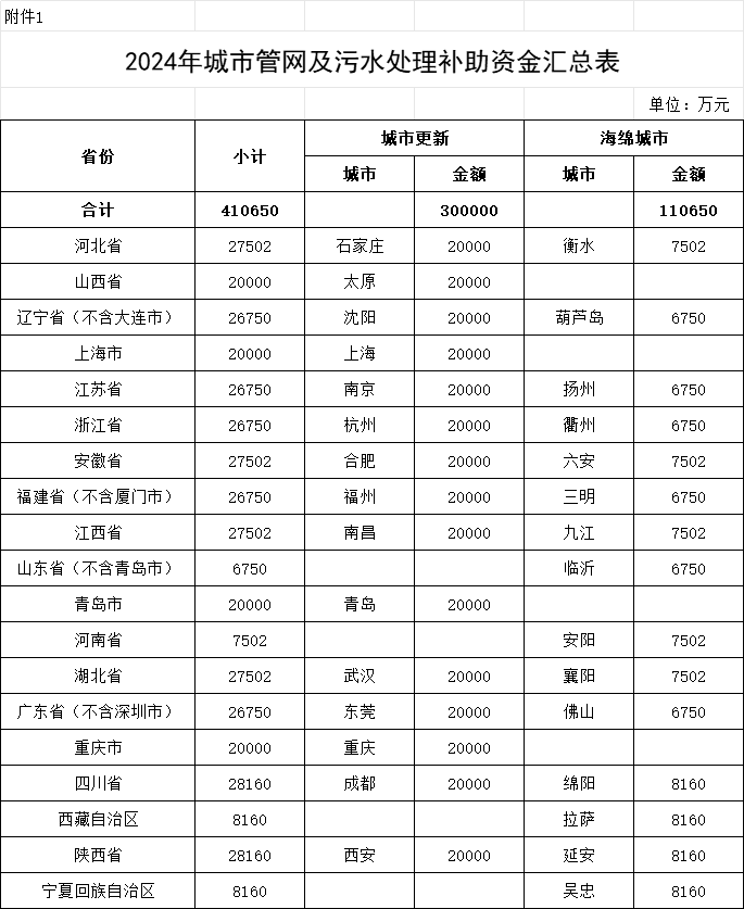 1.2024年城市管網(wǎng)及污水處理補助資金匯總表