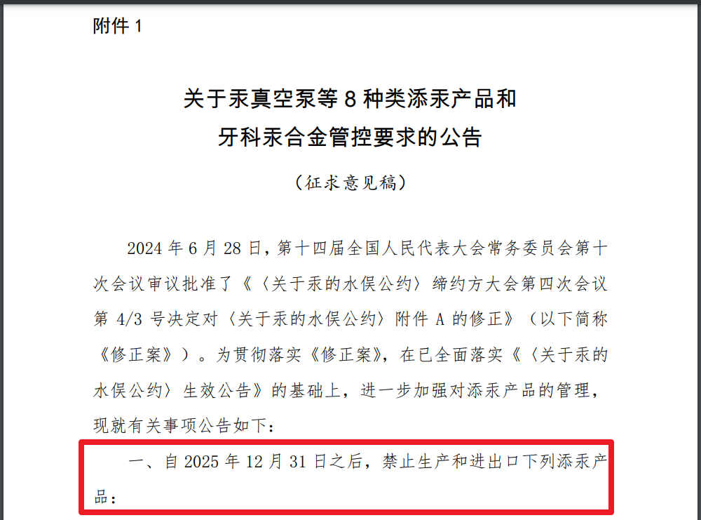 自2025年12月31日之后,禁止生產(chǎn)和進出口下列添汞產(chǎn)品: