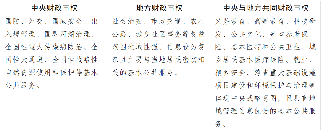 表1:中央與地方財政事權(quán)和支出責(zé)任劃分(2016)