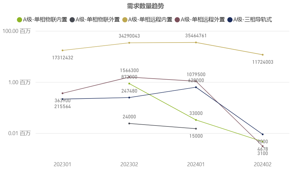 集中器部分33.89萬只/臺,需求環比下降約69%;