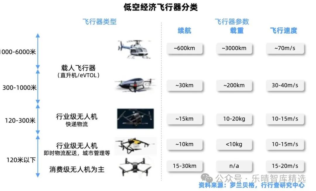 低空經(jīng)濟(jì)的飛行器根據(jù)飛行航程高度不同可分為: