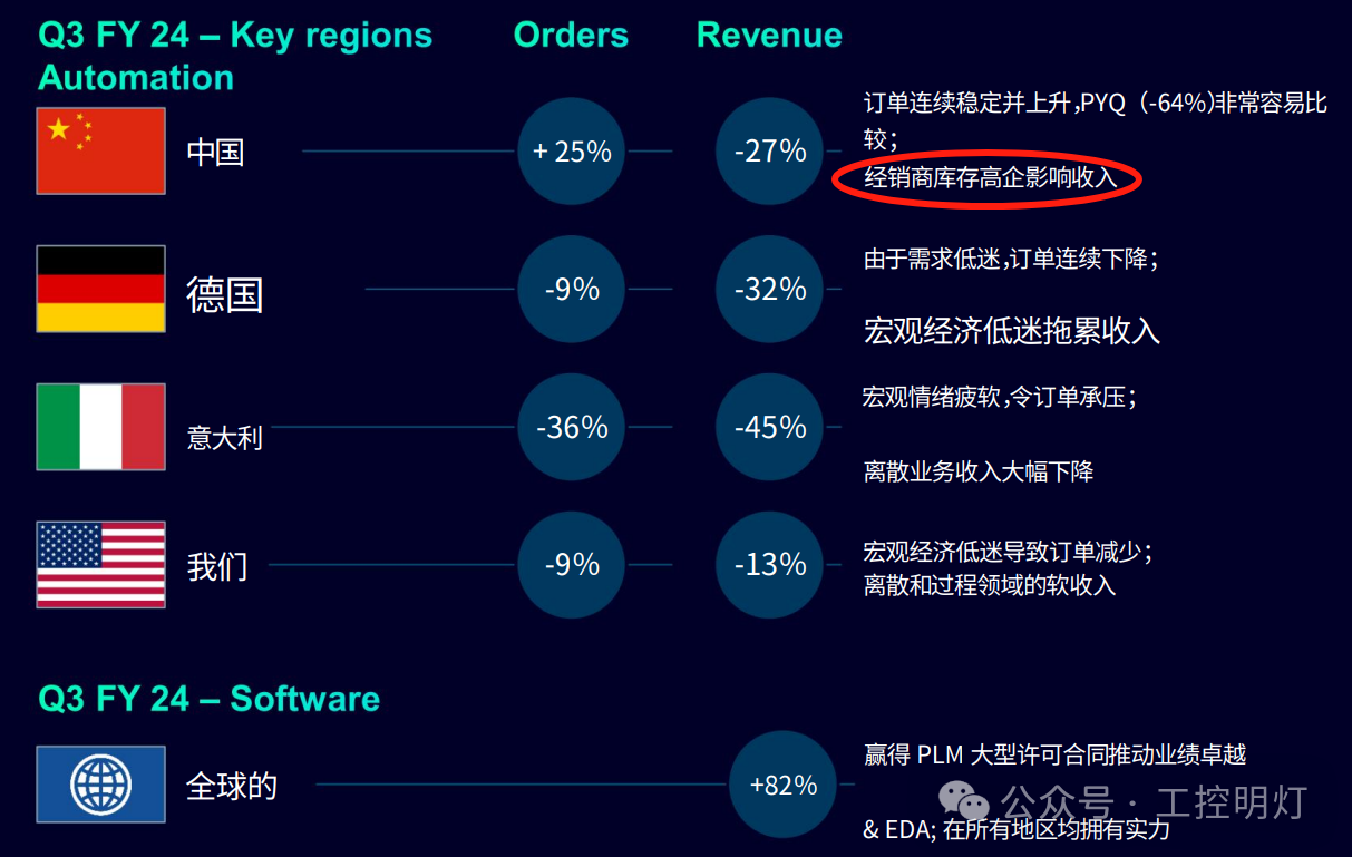 與之前的假設(shè)相反,Digital Industries 自動(dòng)化業(yè)務(wù)的客h去庫存化可能會(huì)持續(xù)到今年下半年,尤其是在中國。對(duì)于 2024 財(cái)年下半年,Digital Industries 假設(shè)其⾃動(dòng)化業(yè)務(wù)的需求將⽐本財(cái) 年上半年有所回升,并預(yù)計(jì)其軟件業(yè)務(wù)將獲得⼤量合同。