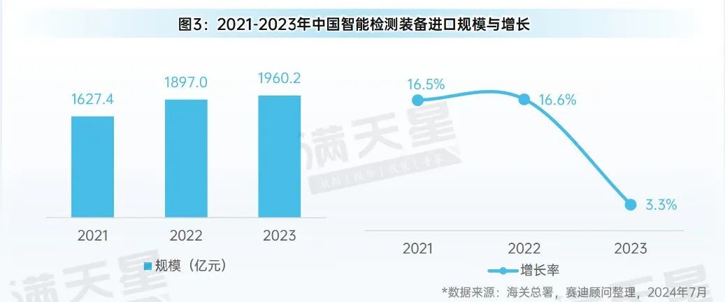圖3:2021-2023年中國智能檢測裝備進口規模與增長