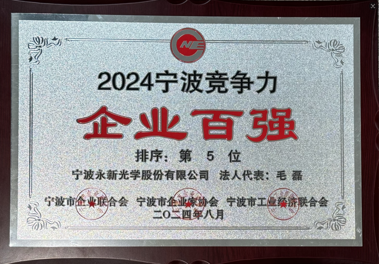 8月30日,寧波市企業(yè)聯合會、寧波市企業(yè)家協會、寧波市工業(yè)經濟聯合會正式發(fā)布2024寧波企業(yè)百強榜。永新光學憑借在科技、標準創(chuàng)新和企業(yè)高質量發(fā)展方面的卓越表現,再次榮登“寧波·競爭力”百強榜前十位強(本次第五位),這是公司自該榜單設立以來第十次獲此殊榮。